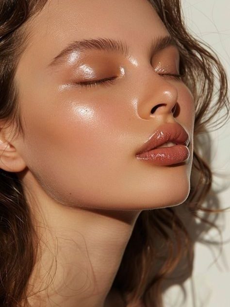 В макияже выбери кушон с эффектом мокрой кожи. Для нанесения не растягивай продукт, а аккуратно прихлопывай спонжем — это позволит сохранить естественную влажность и избежать неестественного блеска. Легкое припудривание Т-зоны поможет контролировать жирный блеск, а скулы и спинку носа оставь блестящими — так кожа будет светиться изнутри, без эффекта жирности.