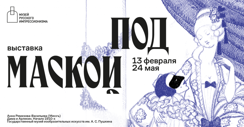 Выставка «Под маской» в Музее русского импрессионизма, приуроченная к юбилею музея, представляет панораму карнавалов и маскарадов XIX–XX веков. Экспозиция охватывает период с 1830-х по 1930-е годы и начинается с раздела «Ветошь маскарада» (эпоха Николая I), где представлены портрет императора в доспехах и персонажи из литературы и истории. Отдельный блок посвящён русскому стилю на придворных балах, включая знаменитый бал 1903 года.