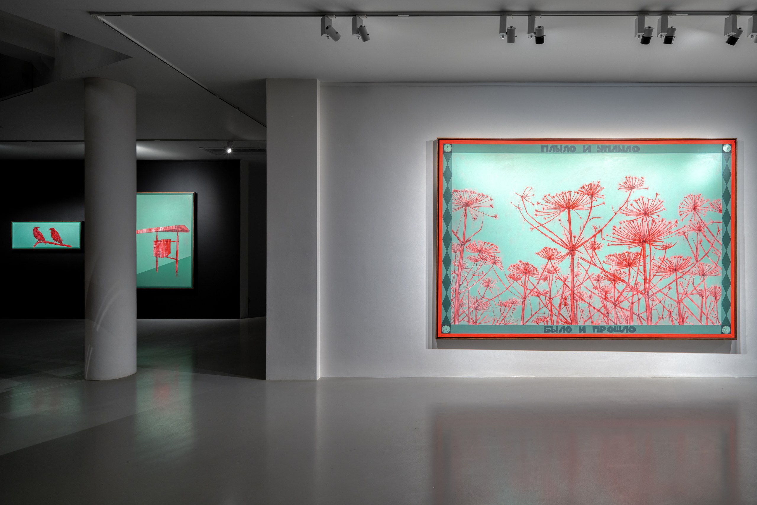 Одним из ключевых для проекта стал образ уробороса — змеи или дракона, пожирающего свой хвост. Это древнейший символ цикличности, чередования жизни и смерти, постоянства изменений, а для Никиты – бега по кругу и самоедства. Другой повторяющийся и почти навязчивый образ – борщевик, синоним слова «путь» для художника. Внешний мир – дорога с постоянно мелькающими полями борщевика за окном, а внутренняя инертность героя, невозможность что-либо изменить – покосившаяся остановка где-то на этом пути. «”Счастливого пути” — это не пожелание, а скорее ироничное напоминание о том, как легко мы можем заблудиться в бесконечном круговороте, где нет простого ответа на вопрос: куда мы на самом деле идем?» –спрашивает куратор выставки и арт-директор фонда и галереи Ruarts Катрин Борисов.