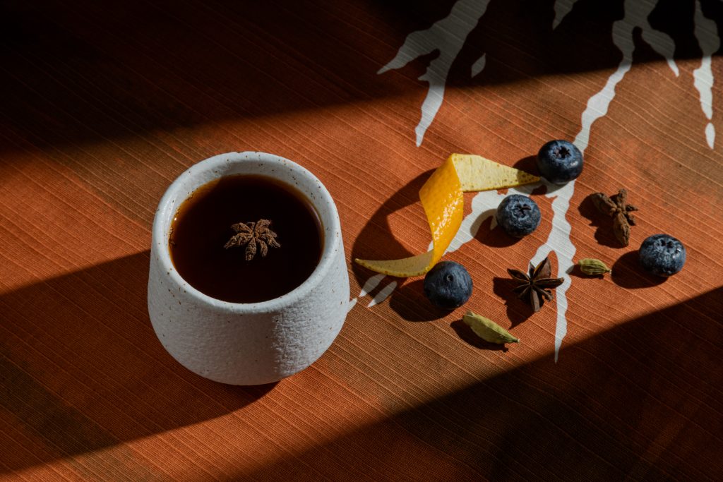 Пряный глинтвейн на основе саке и ферментированного уишаньского улуна Да Хун Пао. За сладость отвечает цветочный мед, а лесная черника придает вкусу ягодные ноты.