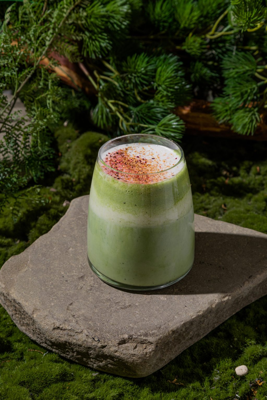 Матча-шейк с белым шоколадом, кокосовым молоком и кленовым сиропом. За счет воздушной текстуры напиток напоминает настоящий молочный коктейль, но с приятной травяной горчинкой матчи и деликатной сладостью кленового сиропа.