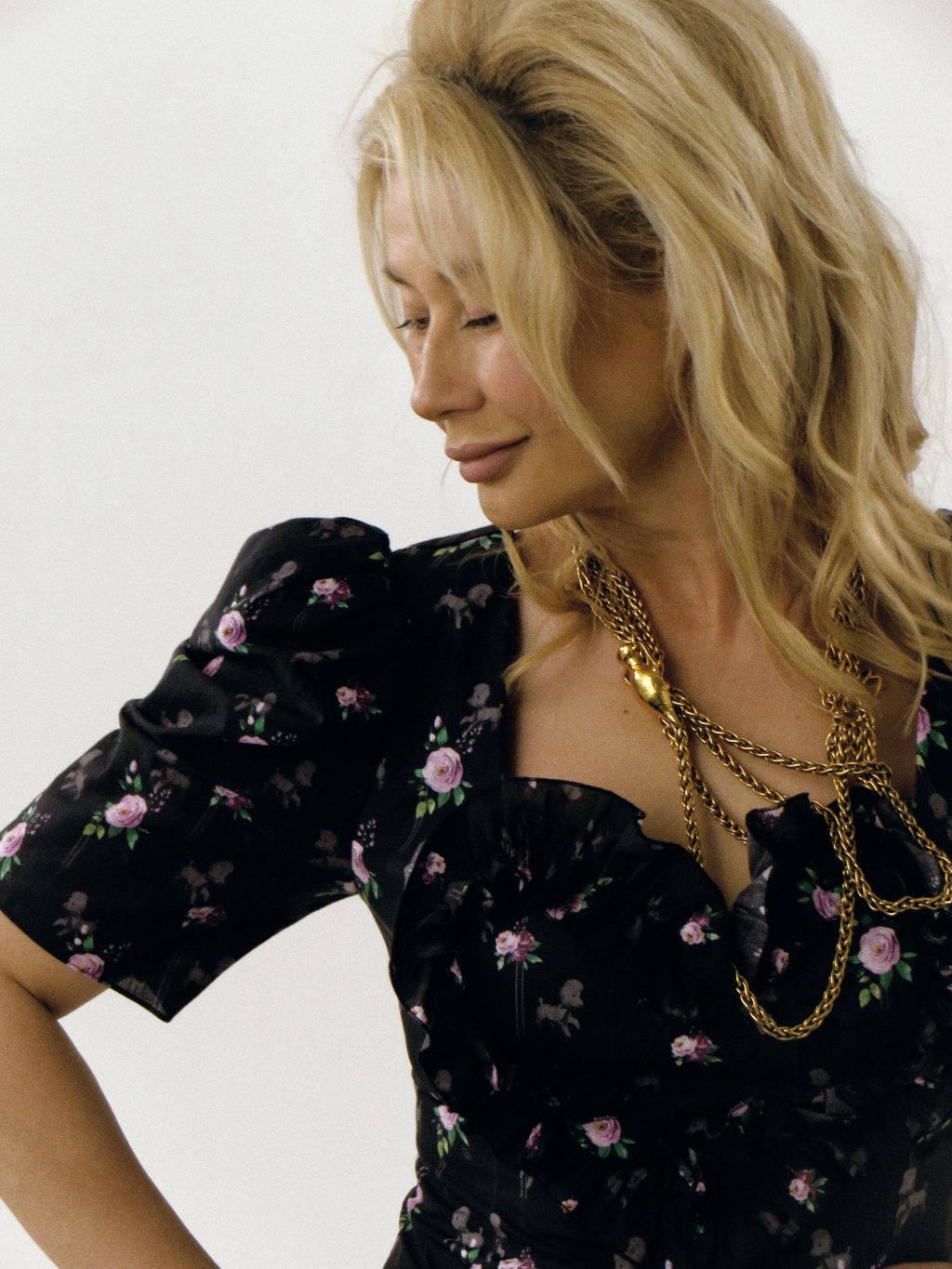 Она бунтарская. У меня ощущение, что моя героиня решила полностью раскрыться и дать себе свободу — буквально выпустить всё из себя и побыть без масок. Если прошлая коллекция была более задумчивая, то здесь мне захотелось дерзости. Наверное, это и моё внутреннее ощущение сейчас — немного побунтовать. Хочется рок-н-ролла! Но при этом я не могу уйти полностью в рок — у меня женственный бренд. Поэтому только нотка (улыбается).