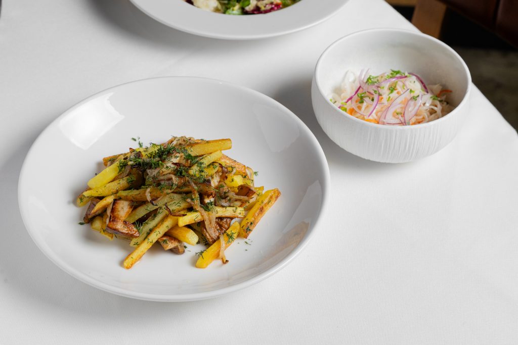 И, конечно же, хотя бы один раз в пост надо попробовать, пожалуй, самое уютное блюдо — жареный картофель с белыми грибами (1150 руб.). В «Магаданах» его подают с квашеной капустой с красным луком и душистым маслом. Вкусно, как у мамы или бабушки, и абсолютно по-домашнему!