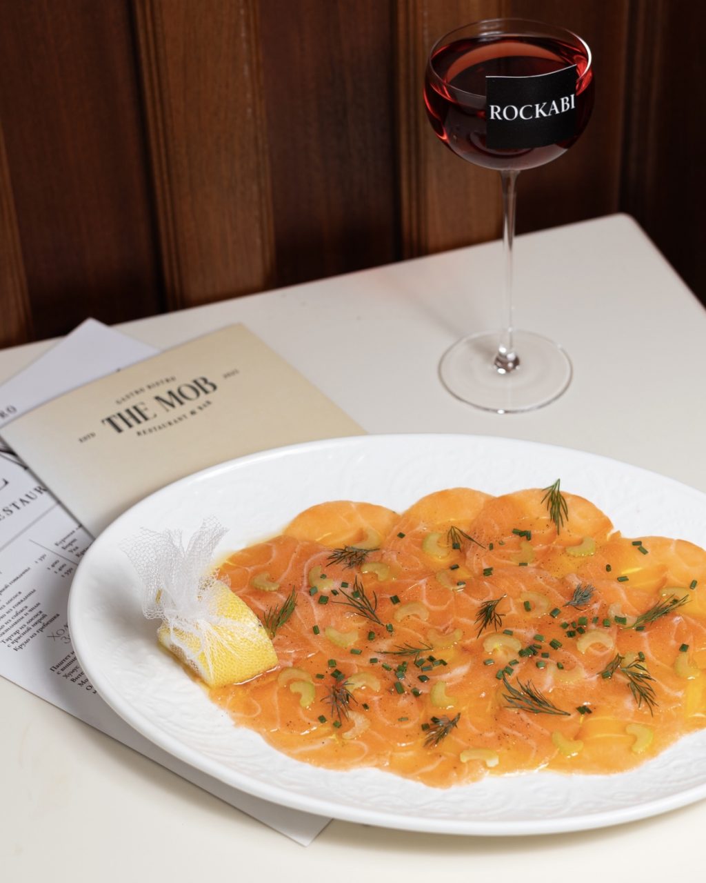The Mob — городское all day dining бистро, вдохновленное Нью-Йорком 70-х и место силы для тех, кто ценит спокойную уверенность и дух времени. Объединенные философией и стремлением к безупречному качеству Rockabi и The Mob создали атмосферный гастро-сет «Evening hours», в котором раскрывается красота и значимость каждого мимолетного мгновения. В сет входит карпаччо из лосося и коктейль Eclipse на основе водки, винного кордиала и белого какао. Коктейль назван в честь пудрово-бронзового жакета Eclipse, будто сотканного из вечернего света. Подобно палитре изделия вкусовые оттенки напитка деликатно раскрываются в мягком мерцании, придавая ему особую изысканность. Прохладная свежесть нежного карпаччо из лосося, бархатная теплота шлейфа коктейля, сдержанность, гармония ивнимание к деталям — интеллигентная роскошь, которая сделает вечер особенным в любой компании.