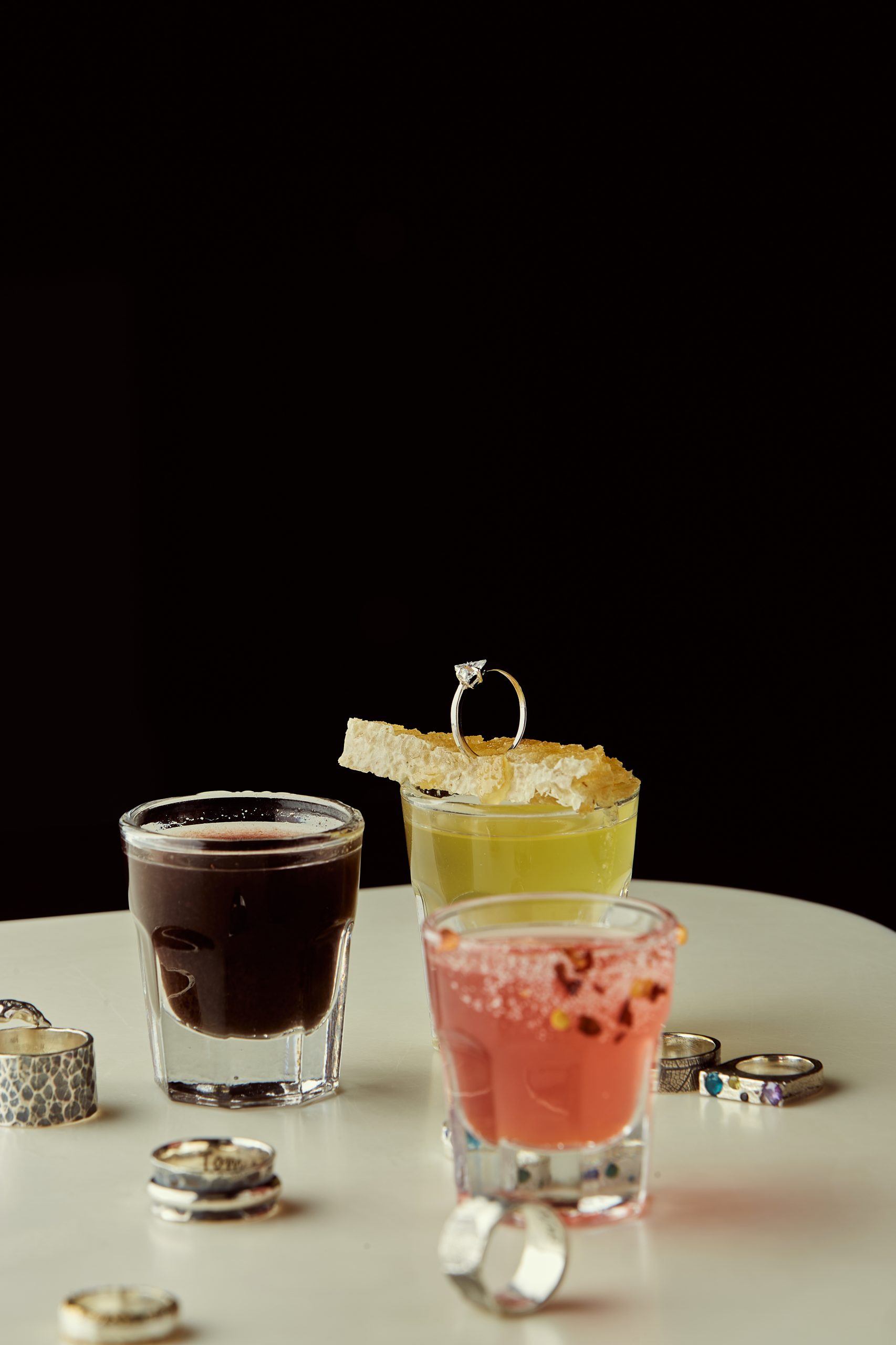 В специальном меню по мотивам ювелирного искусства, мы взяли три ключевых этапа создания украшений — и превратили их в три шота. Каждый — маленькая история, которую можно выпить.