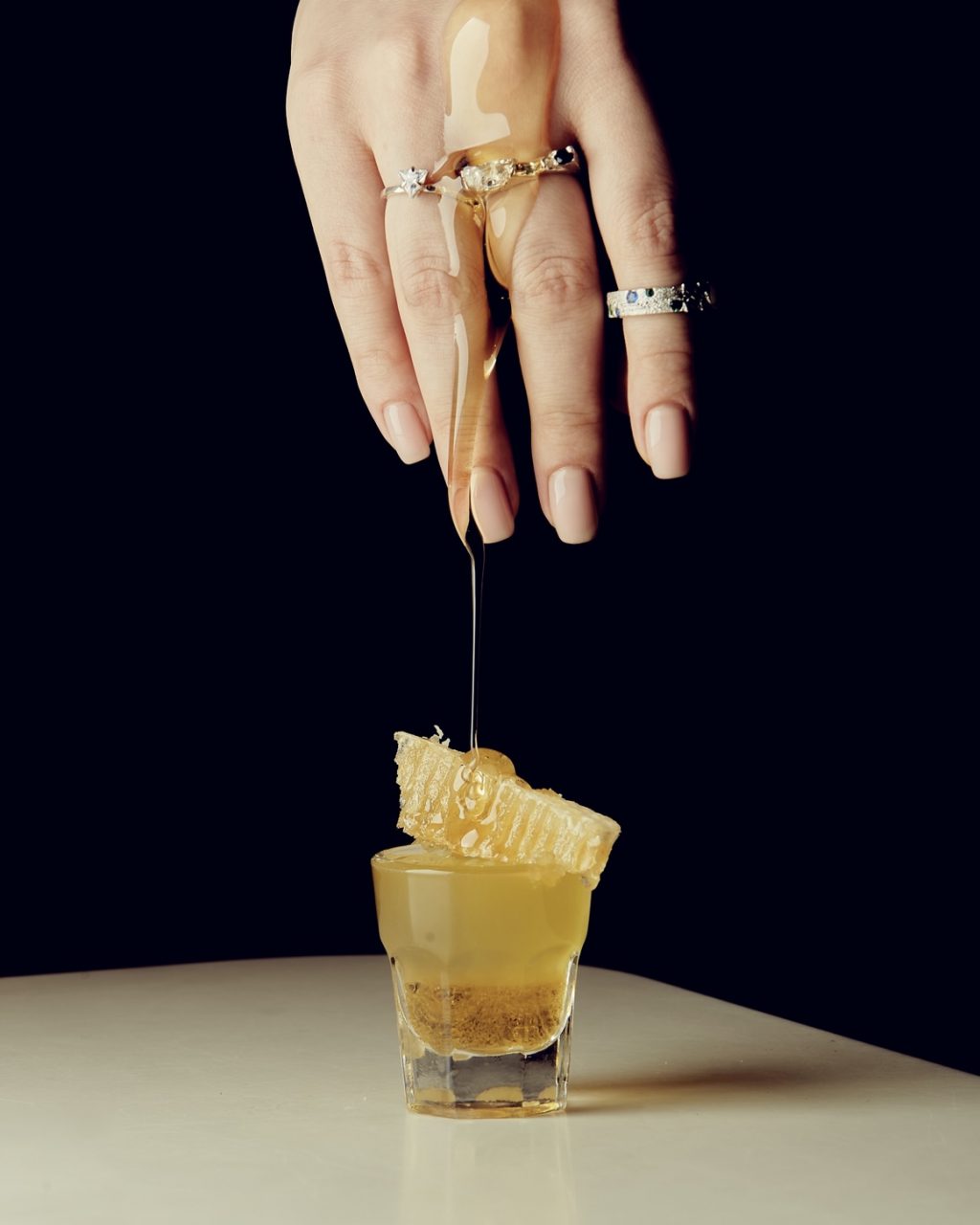 Прежде чем металл станет украшением, его делают из воска. Воск — мягкий, терпеливый и принимает любую идею, даже самую наглую. Мы превратили это начало в шот, полный тепла и гладкости, как первая модель будущего кольца. Сладко, обволакивающе, чуть дико — так выглядит момент, когда идея только появляется.