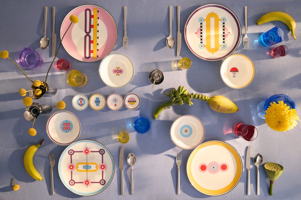В основе коллекции лежит настоящее отражение духа итальянского дизайна 80-х годов, с его особым настроением, яркостью и живостью. Сервиз получился веселым, с нотками бунтарского шика. Каждая тарелка имеет уникальный, неповторяющийся декор.